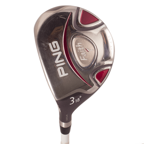 The Ping Faith fairway wood is designed to optimize slower swing speeds and is an easy-to-hit alternative to long irons. It features a shallower head and a deep center of gravity, allowing the player to launch the ball higher more quickly. It also features a slightly higher center of gravity, creating more spin for a higher launch. Its larger effective hitting area is both confidence inspiring and ensures more efficient face-to-ball contact.